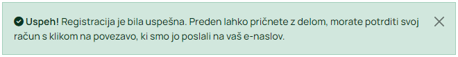 V primeru pravilno izpolnjenega obrazca, se bo na vrhu strani prikazalo zeleno obvestilo, na vaš e-naslov pa boste dobili novo sporočilo s povezavo za potrditev računa.